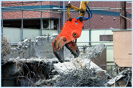 RC構造は非常に丈夫で硬いため、専用の重機や粉砕機を使用します。
